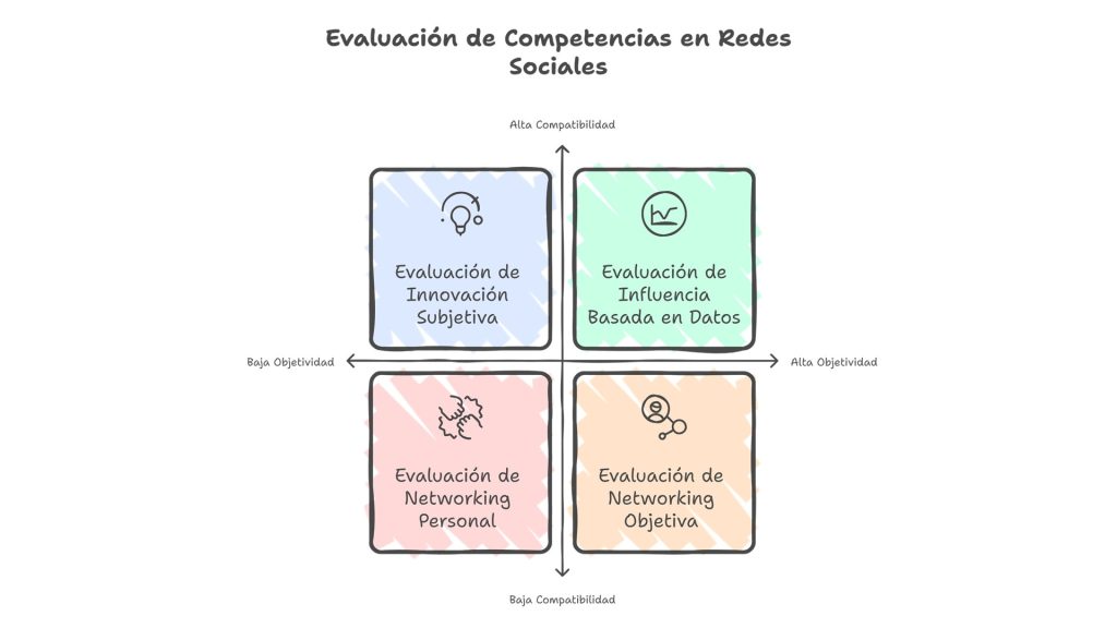 En un proceso de selección por competencias, todo debe girar en torno a la evidencia de entregables y comportamientos observables, no a juicios subjetivos. Aquí es donde las redes sociales ofrecen un potencial aún subutilizado: publicaciones, interacciones y proyectos compartidos pueden evidenciar competencias como liderazgo, comunicación, pensamiento crítico o incluso gestión del cambio.