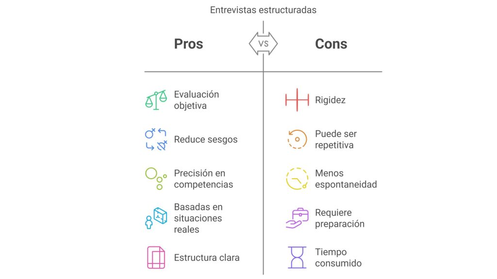 En cambio, las entrevistas estructuradas eliminan gran parte de la subjetividad. Siguen un guion previamente diseñado que se enfoca en evaluar competencias específicas para el puesto, creando un proceso justo y predecible para todos los candidatos.